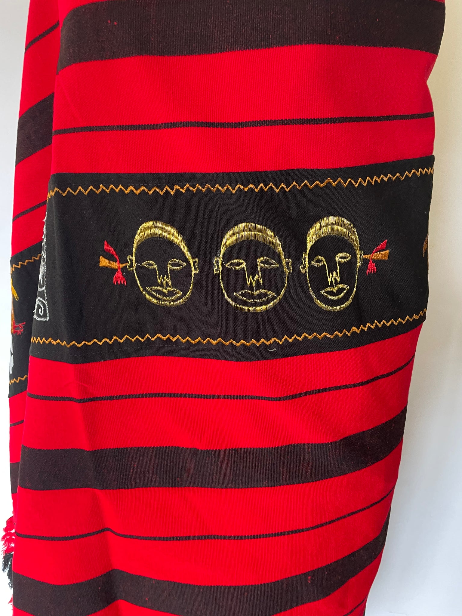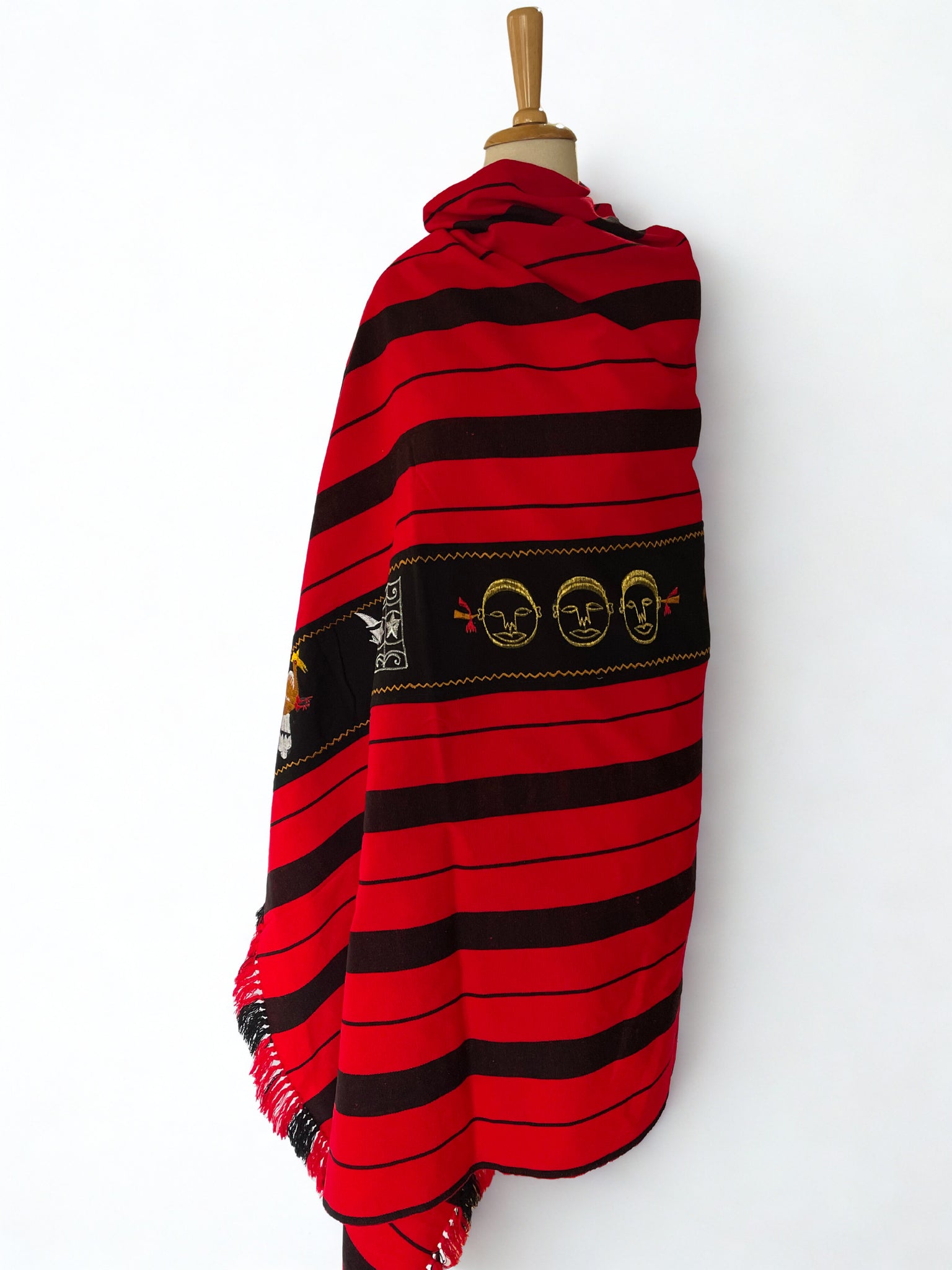 This men’s shawl is a bold expression of tradition, strength, and cultural pride. Crafted in striking red with deep black detailing, it features symbolic woven and embroidered motifs that carry meaning and heritage. Its generous size and soft texture offer both comfort and elegance, making it suitable for ceremonial occasions, cultural celebrations, or as a distinguished statement piece. Timeless and dignified, this shawl reflects the artistry and identity of its origin while remaining versatile for modern wear.